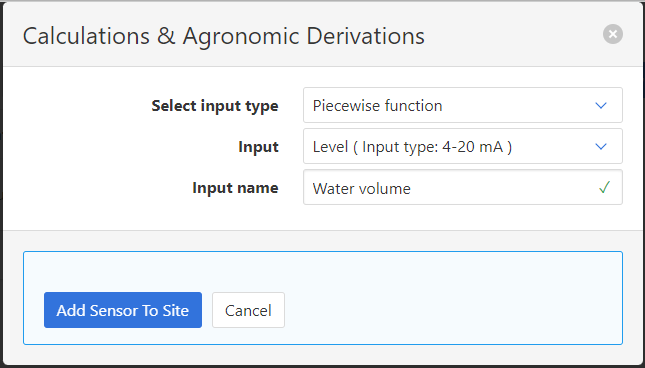 Calculated Inputs can be added to a Site from the "Other" section of the Inputs settings page.