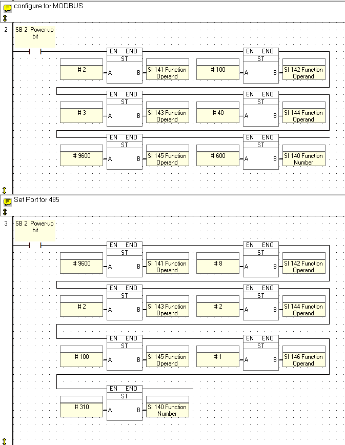 Setup the Ladder program to enable Modbus by storing values into the System Integer (SI)