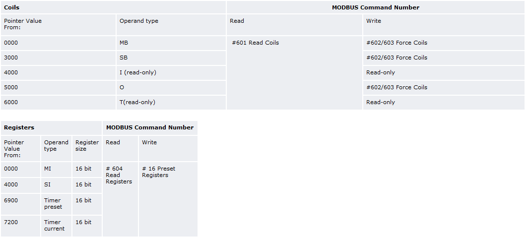 The input setup would be based on the Ladder function code that the PLC has installed. This would be different for each PLC as each register and coil can be programmed to contain their desired value.