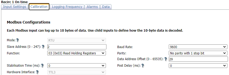 Address: 2, Baud rate: 9600, Data bits: 8, Party: None, Stop bit: 1 etc.