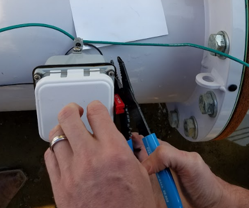 Find connector cable coiled inside cap, connect the M12 cable, and twist on the cable gland.